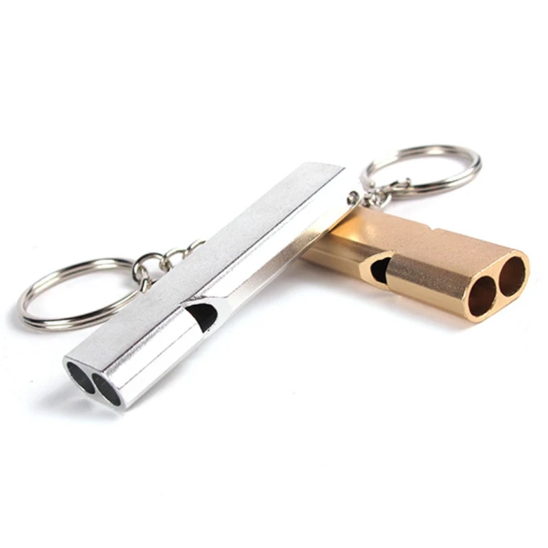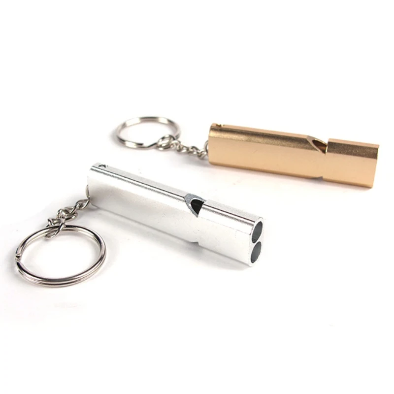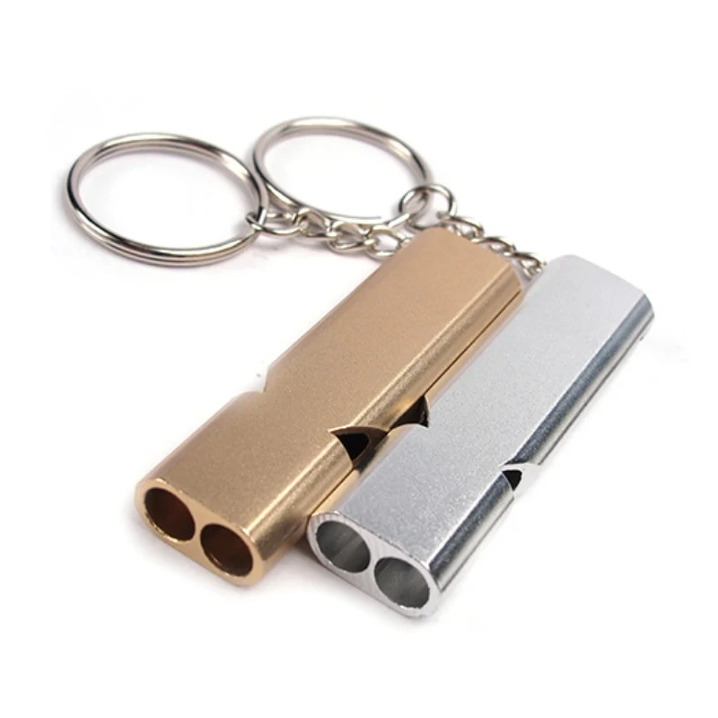 Double Pipe High Decibel Aluminum Alloy Outdoor Emergency Survival Whistle Keychain Cheerleading Wh