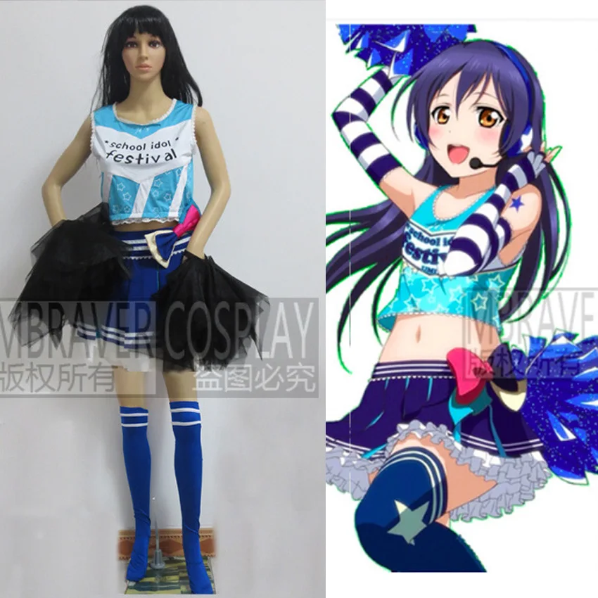 HOT Sale Japanese Anime Love Live Sonoda Umi Cosplay Costume Lolita Blue Cheerleading Uniforms Plus Size