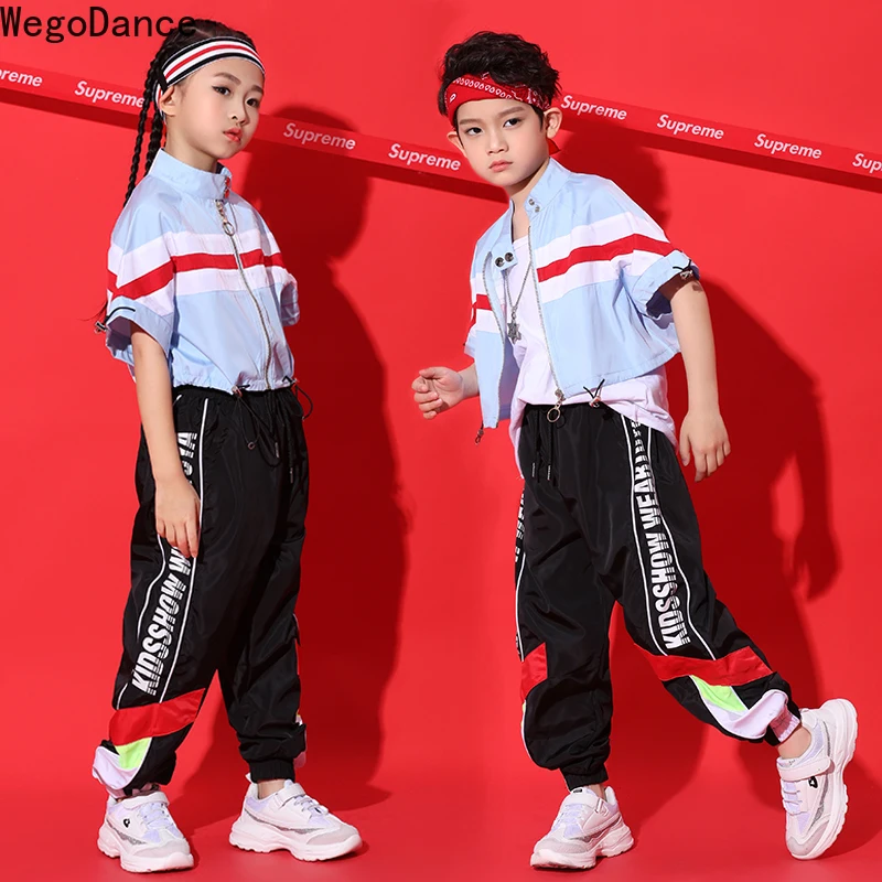 Review New modern jazz dance costume girl sexy top salsa pant hiphop dance costumes kids cheerleader costu